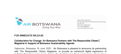Gaborone, Botswana 21 August 2025 - Air Botswana is pleased to share its network rationalization. The airline’s focus is to strengthen operational efficiency, enhance services, improve customer access, and continue to facilitate trade and tourism.